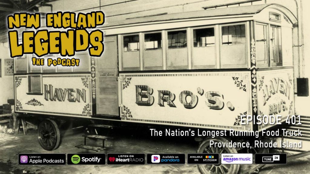 In Episode 401 Jeff Belanger and Ray Auger stumble up to Haven Bros. Diner in downtown Providence, Rhode Island to explore the storied history of not just Rhode Island’s, but the nation’s longest running food truck. This Providence icon has been rolling through town in one form or another since 1893.